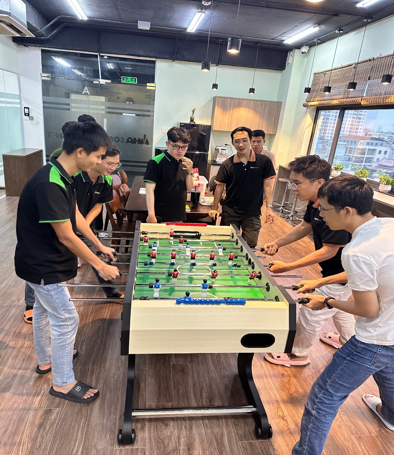 Tại Ahasoft, hiệu quả công việc luôn đi cùng sự cân bằng. Mỗi ngày, đội ngũ đều có thời gian giải lao linh hoạt để thư giãn sau những giờ làm việc tập trung. Bên cạnh việc nghỉ ngơi, trò chuyện hay thưởng trà, bàn bi lắc luôn là “điểm hẹn” quen thuộc giúp mọi người xả stress và tạo không khí sôi nổi trong văn phòng.